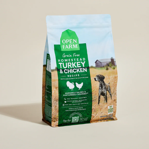 Open Farm’s Chicken & Turkey Dry Dog Food is a wholesome kibble made from real chicken and turkey raised on humane, antibiotic-free farms. It has a strong protein punch to keep your dog active and healthy, plus ingredients like pumpkin, apples, and flaxseed to help digestion.