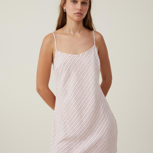 Enhance your summer wardrobe with the Haven V Neck Mini Dress, available at Cotton On for just $24.00 or four monthly installments of $6.12. This chic mini dress comes in five stunning color variants and fits sizes 0 to 12. Designed with a flattering V-neckline and thin adjustable straps, it also features delicate ties at the back for an extra touch of elegance. The blend of 55% linen (flax) and 45% viscose (viscose rayon) ensures a lightweight and breathable feel, perfect for those warm, sunny days.