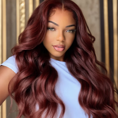 Wearing wigs nowadays has become easier as the UNice 13x4 Pre-Cut Lace Front Reddish Brown Body Wave Wig is made easy and gorgeously used. This wig looks extremely natural and elegant due to its reddish-brown shade and soft body wave curls.